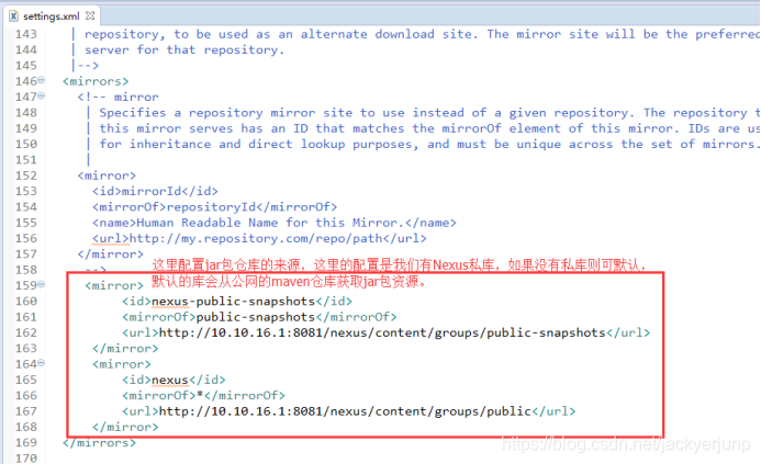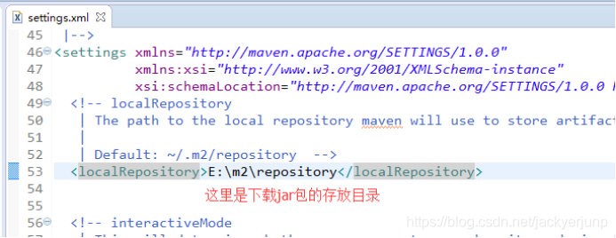 (3)按上一步,点击open file ,编辑settings.xml文件,设置jar包路径与设置jar的公共仓库:
