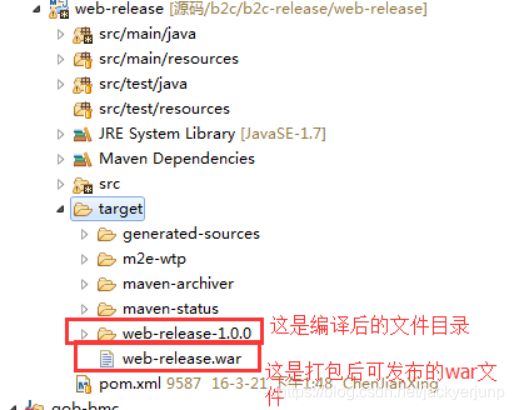(5)步骤(4)完成后可在%project_home%/target 目录下可看到对应的包,如图: