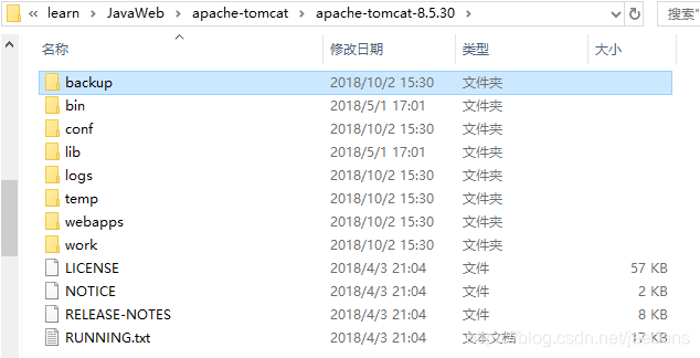 4、删除掉刚才的backup文件夹[backup所在位置根据第3步所说的,因为笔者使用的时tomcat安装目录所以就在目录下就直接发现了,