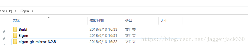 2.解压,比如我解压至D:\Eigen,并在里面新建Build文件夹作为编译使得环境,新建Eigen文件夹作为最后安装的位置