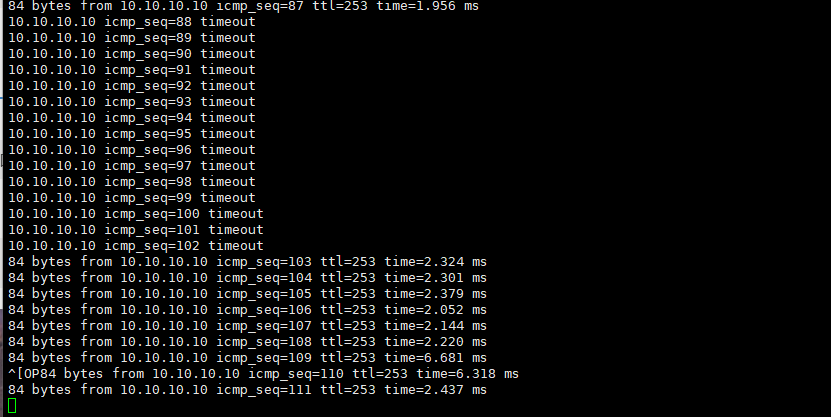 3.将核心交换机sw10直接关机。可以看到pc丢包大概15秒后恢复,源IP变成ASA13上的70.1.1.1