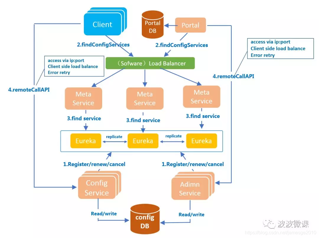 (1)Portal通过域名访问MetaServer获取AdminService的地址列表