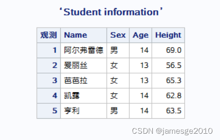 PROC PRINT DATA=SASHELP.CLASS