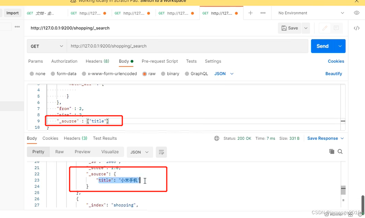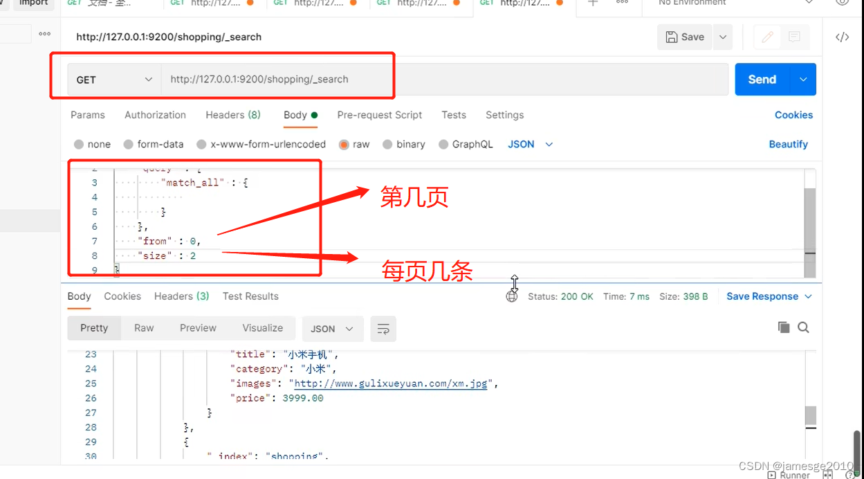 比如:查询第二页数据,from=(2-1)*2=2,第三页数据,from=(3-1)*2=4