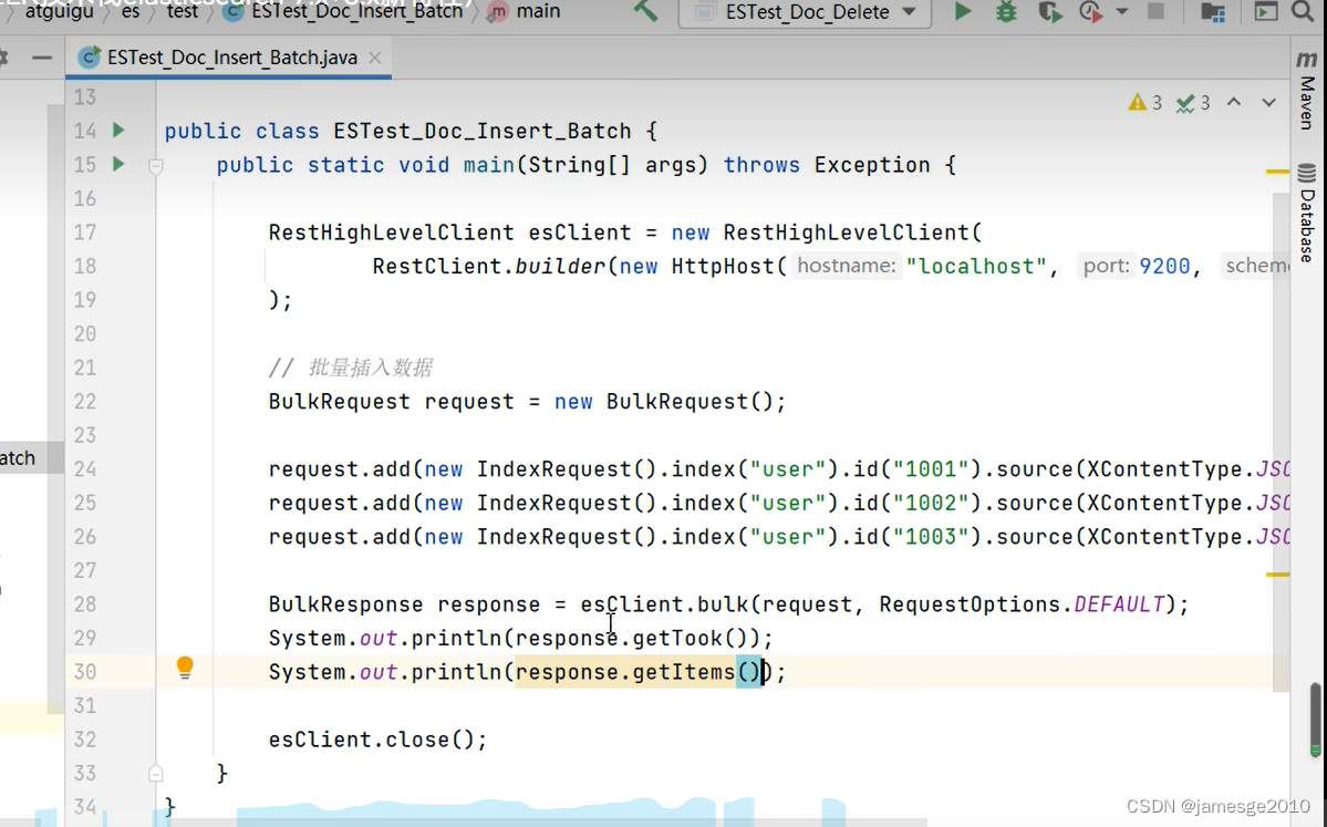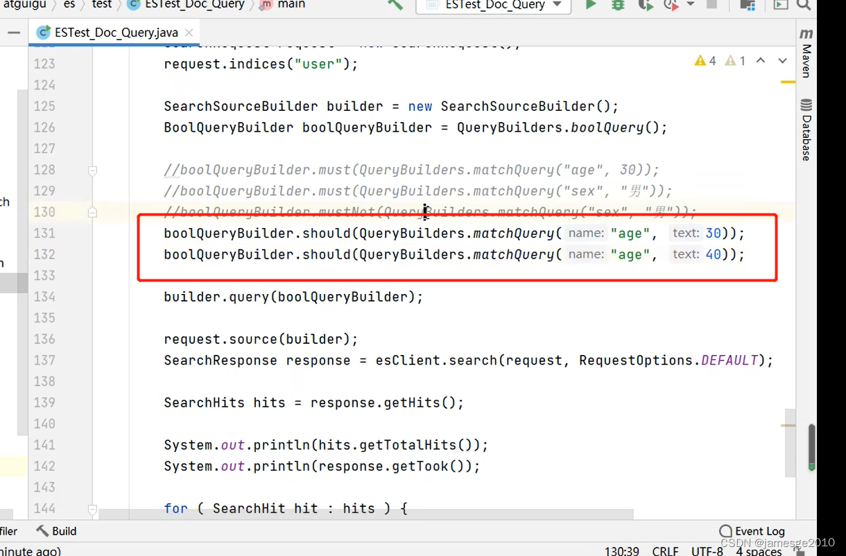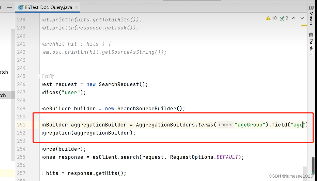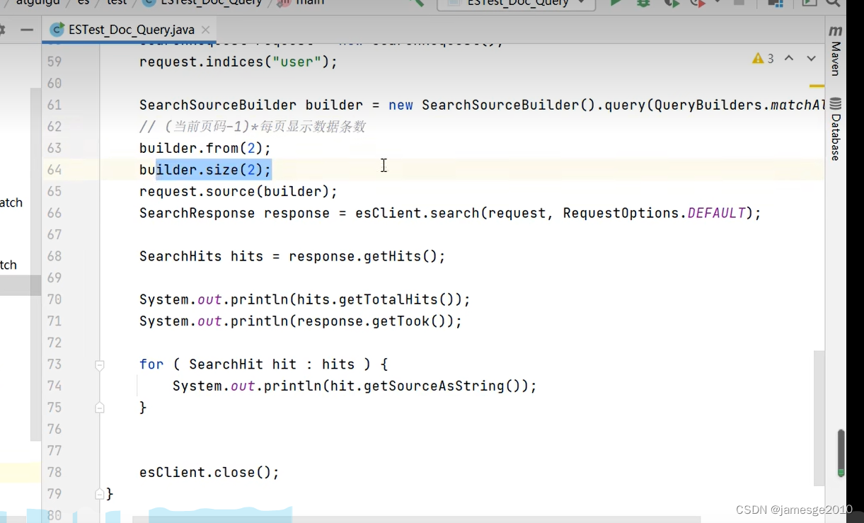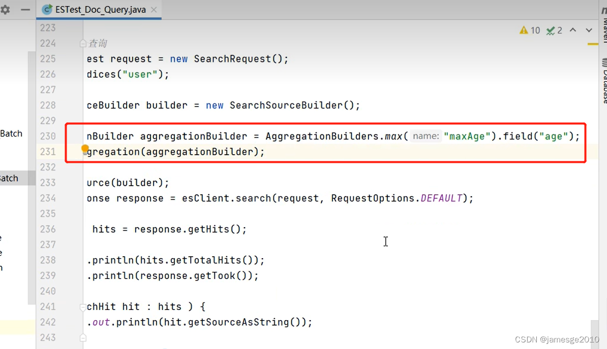 该文通过示例展示了Java对数据库的操作,包括创建和查询索引、插入、更新与删除数据、批量操作、条件查询、分页、排序、字段过滤、多条件与范围查询,以及模糊和高亮搜索,还涵盖了聚合与分组查询功能。