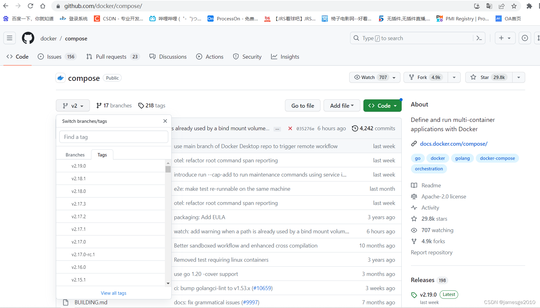 我通过docker --version查看后发现我的docker版本位1.31.1,于是我准备去找3.1的docker-compose安装。好了,问题来了。在github上根本就没有3.x的版本。