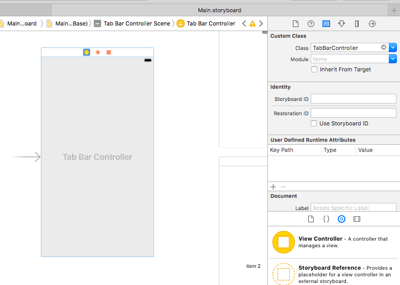 (思路:舍弃系统原生样式,自定义view作为tab bar item的载体,再添加上button。其实在storyboard上面删除tab bar controller与其item controller的链接时,系统的原生tab bar就已经被隐藏了)