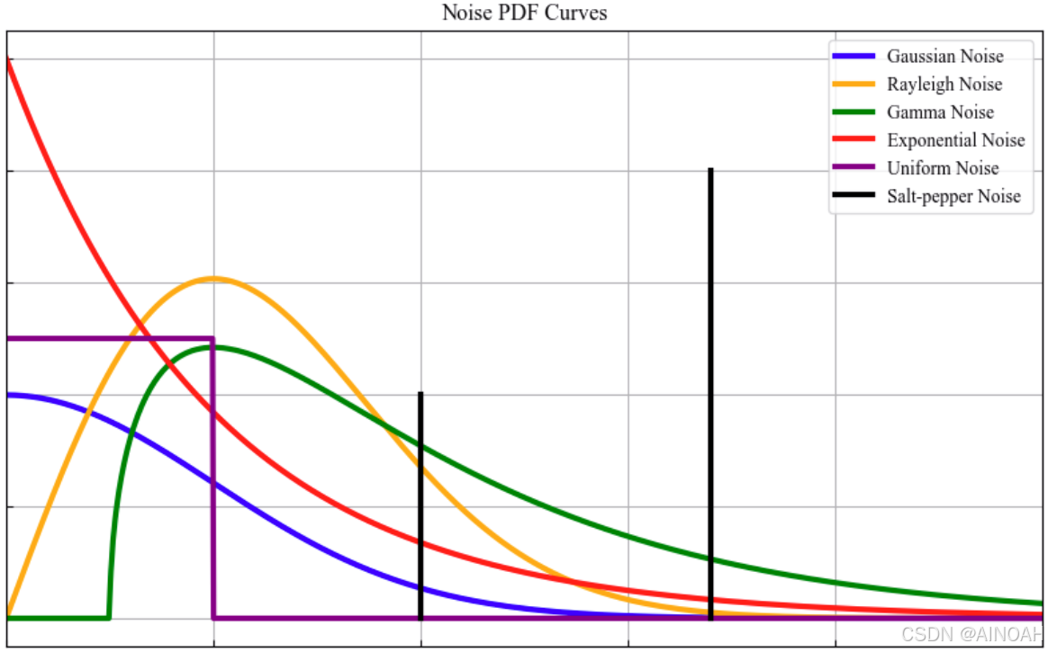 Rayleigh噪声的曲线特点是基本形状右偏。Rayleigh噪声的概率密度形式对整体趋势倾斜的颜色直方图建模非常有效。