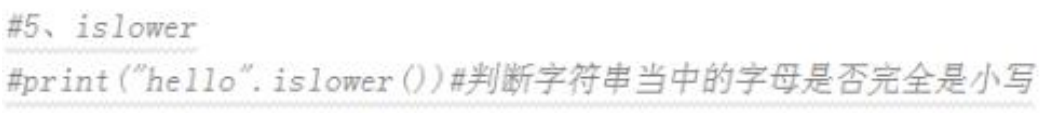功能:检测一个字符串中的英文是否都是小写字母,符号不算 格式:字符串.islower() 返回值:布尔值