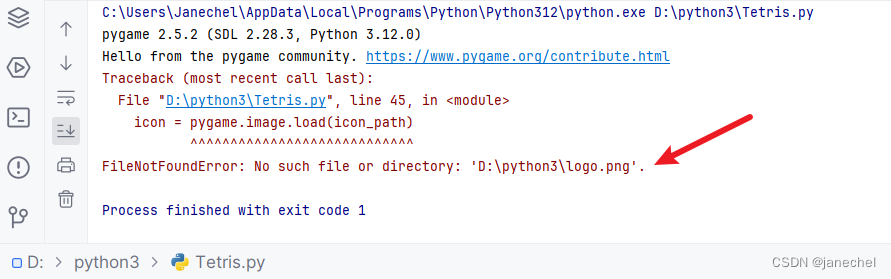 报错提示:运行源程序时,出现“FileNotFoundError: No such file or directory: 'D:\python3\logo.png”报错