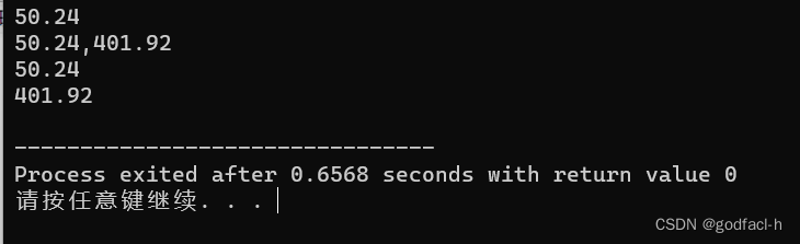 cout<<liv_Cyl.Area()<<','<<liv_Cyl.Volume()<<endl; //直接输出liv_Cyl的面积和体积