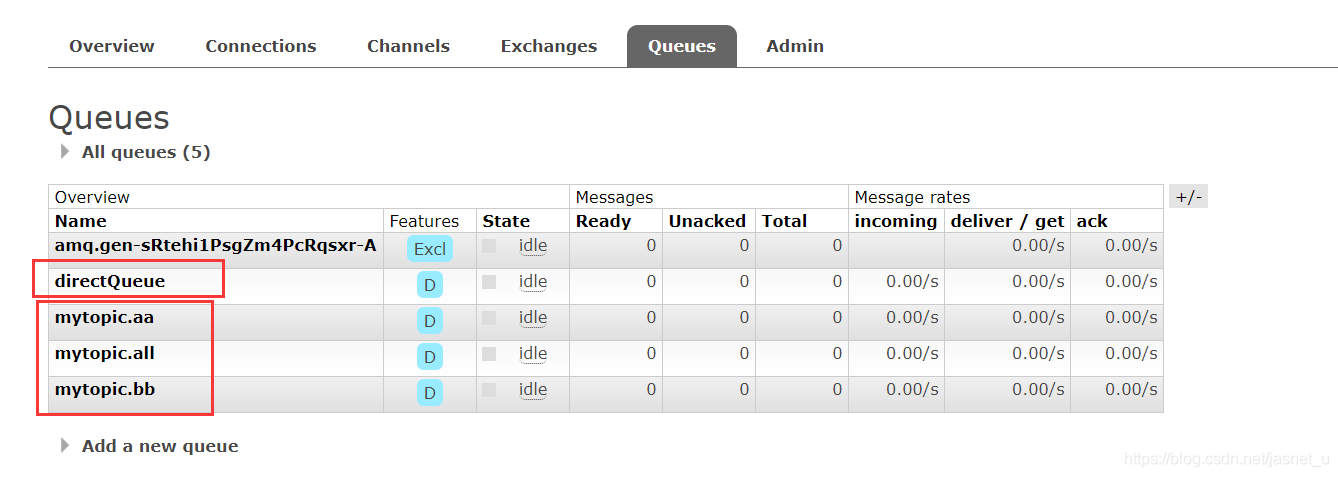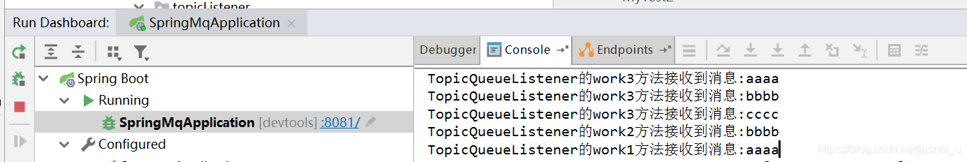 控制台打印结果表明了: work1方法只处理了 路由key为mytopic.aa 的消息, work2方法只处理了 路由key为mytopic.bb 的消息,而
