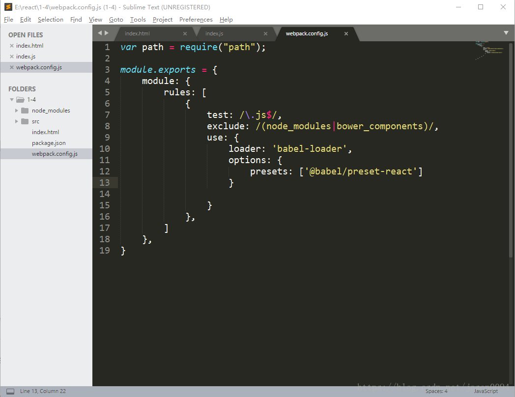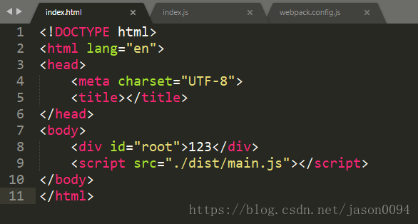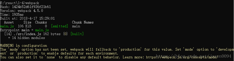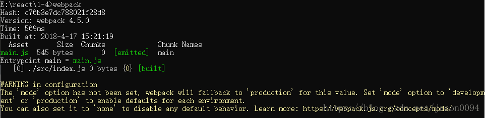 注:webpack4默认入口文件为src中的index.js,可以在webpack.config.js中修改