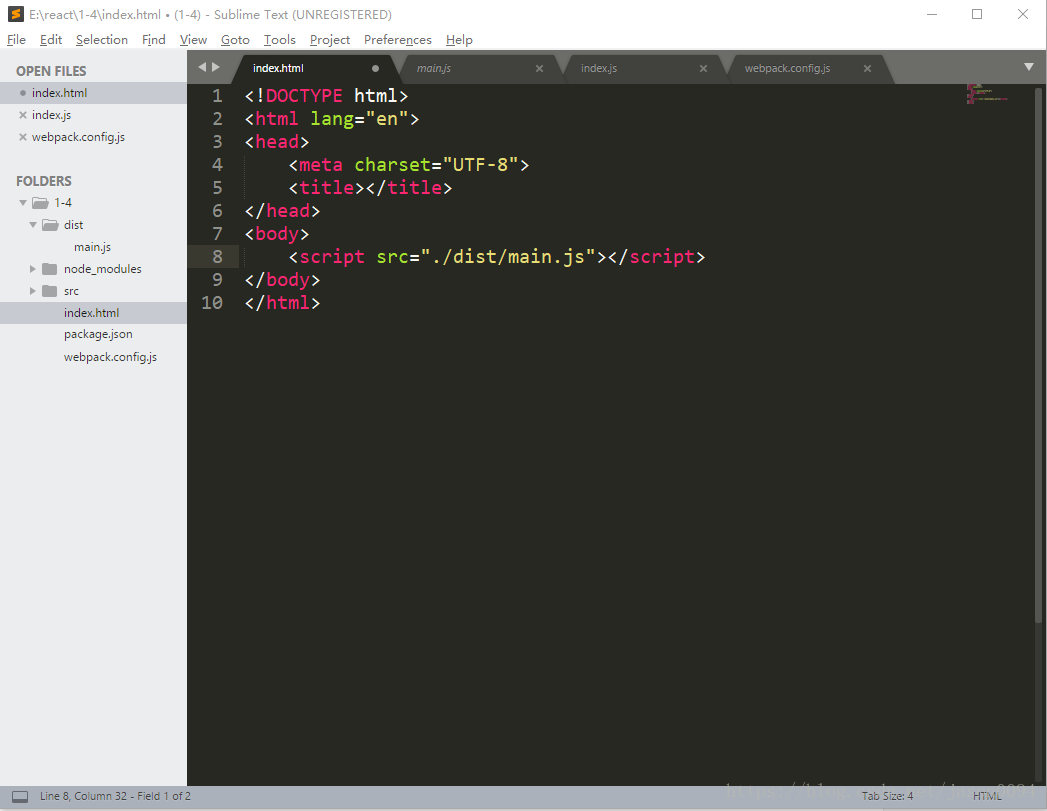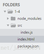 4.在项目文件目录下新建index.html,新建文件夹src,在src中新建文件index.js