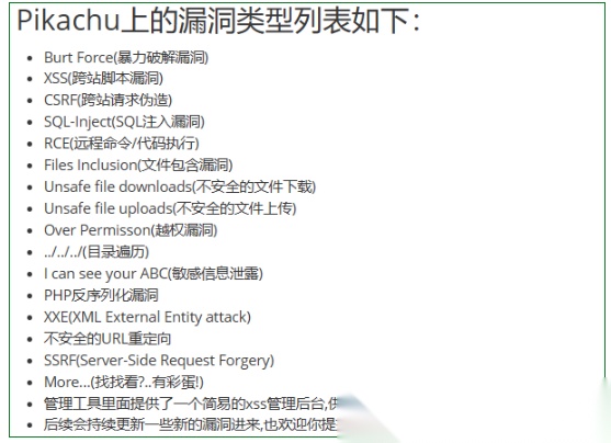 Pikachu 是一个集成了多种常见 Web 安全漏洞的练习平台,旨在为网络安全学习者和爱好者提供一个实际操作环境。它通过模拟真实的漏洞场景,帮助用户学习如何发现、利用以及修复这些漏洞,进而提升他们在渗透测试和安全评估中的技能。