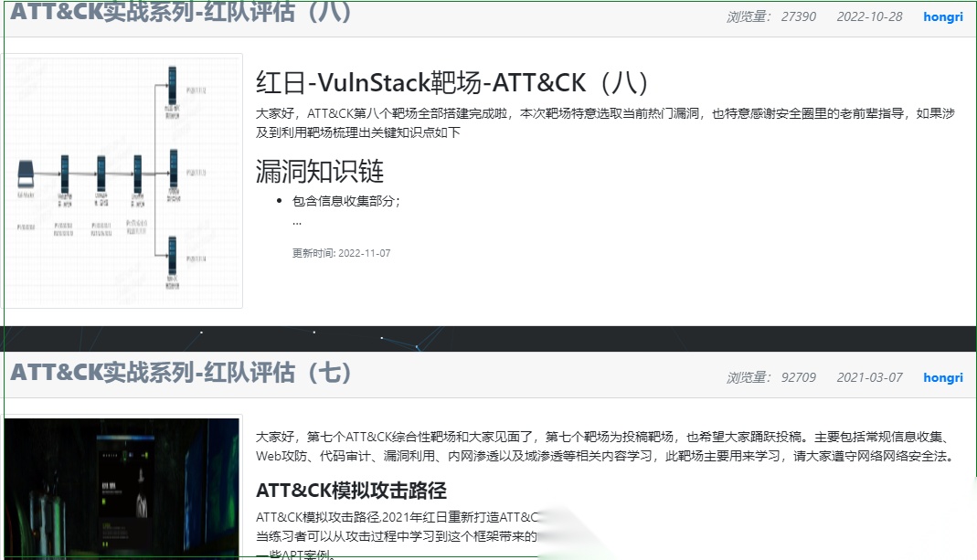 开源靶场VulnStack主要由红日安全团队倾力打造一个靶场知识平台,主要涵盖漏洞列表、资源分享、帮助文档、漏洞博客