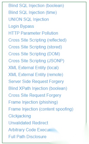 其作者是 Miroslav Stampar, sqlmap同一个作者, 它支持大多数(流行的)Web漏洞环境与攻击EXPLOIT, 同时各个漏洞环境还提供了相关说明与介绍的链接地址。