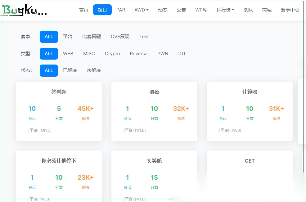 CTF选手训练的天堂,包含各大赛事的CTF原题,好几千道题目,部分题目需要充值会员。