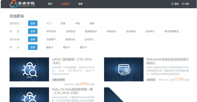 墨者靶场是一个专注于网络安全人才培养的在线靶场平台,提供丰富的网络安全攻防技能实训靶场,涵盖主机、数据库、网络、应用等多方面的网络信息安全知识内容,帮助用户提升网络安全攻防实战操作技能。