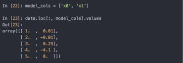 一些模型,可能只想使用列的子集,使用loc,用values作索引: