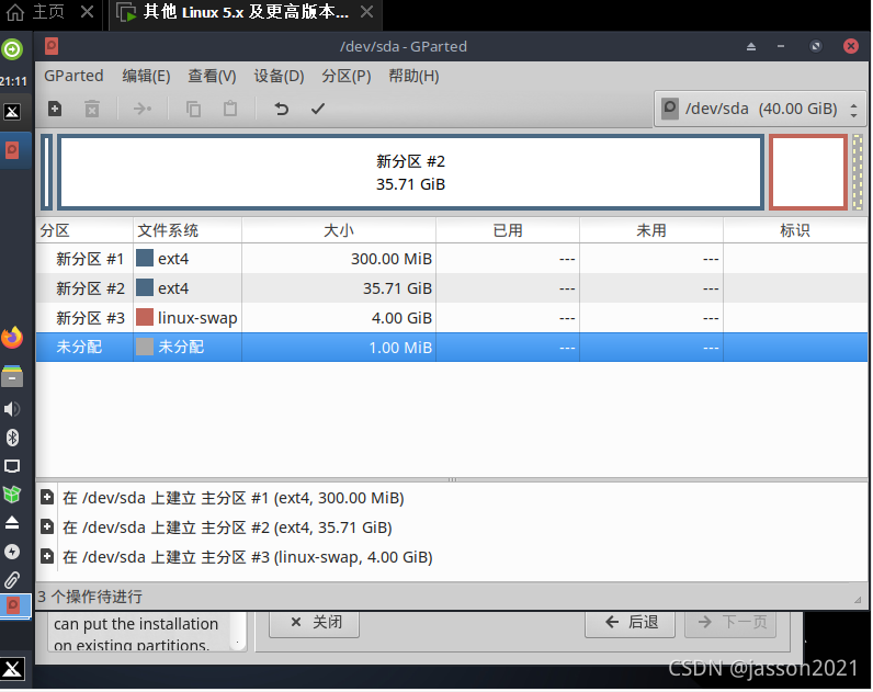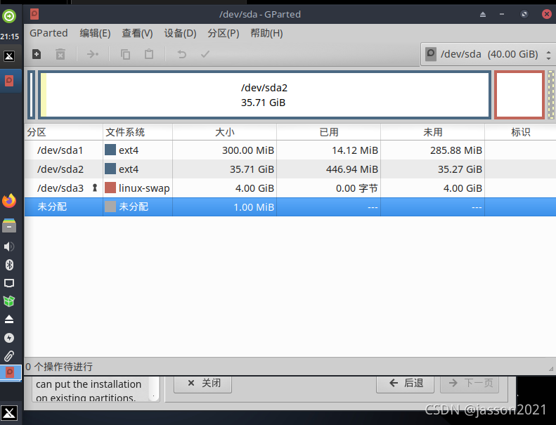 点击“√”→提示你会丢失数据,虚拟机本来新子机就没有数据点击应用,等待格式化结束,可以查看细节,也可以保存,不是实体机,我直接关闭→右键linux-swap分区→启用交换空间,然后关闭分区工具