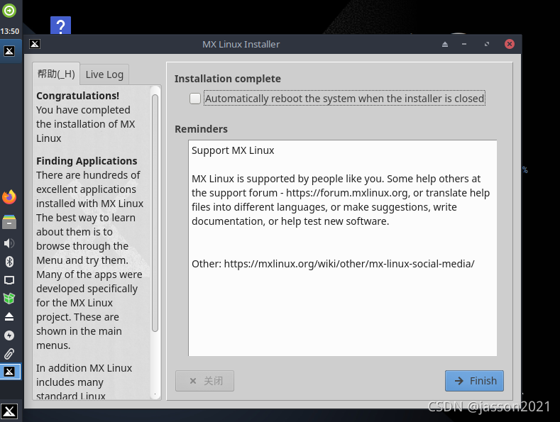 然后就是等待时间,等待刚才的设置为你部署进系统,然后就是取消上面的默认重启按钮的√,点击finish。