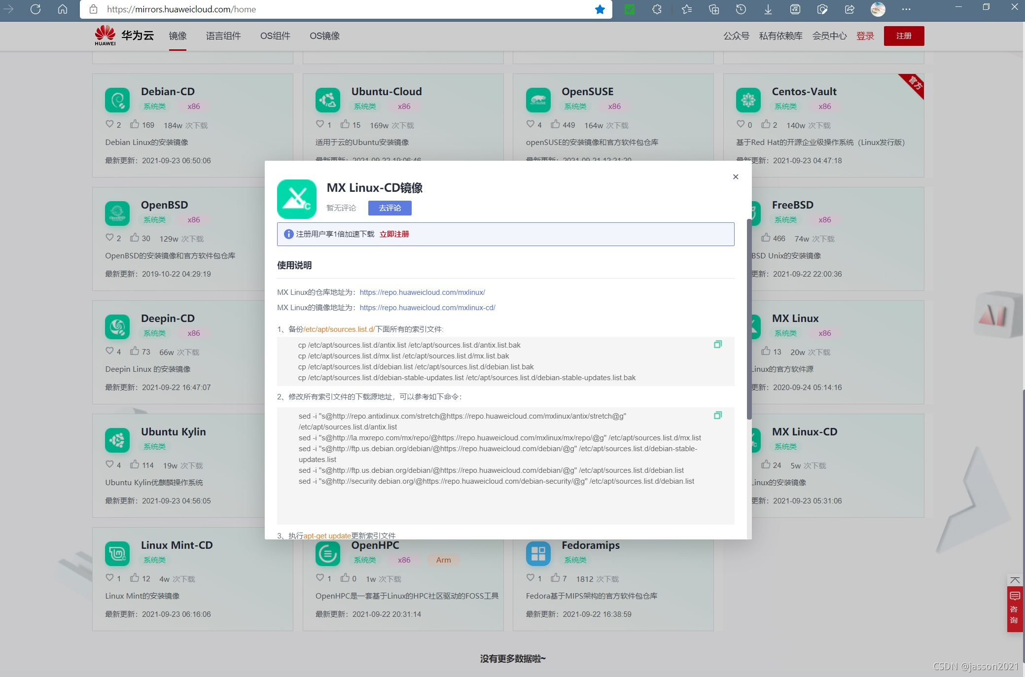 点击操作系统→点击MX Linux CD→点击图中镜像地址