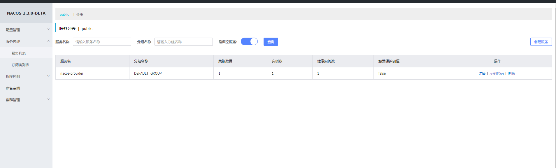 5. 启动服务,可以发现nacos-provider已经向nacos-server注册
