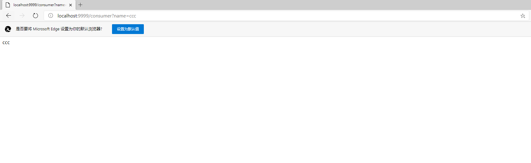在浏览器上访问http://localhost:9999/consumer?name=ccc