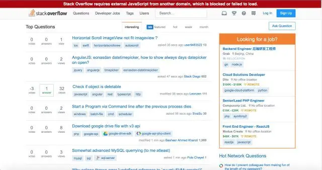 Stack Overflow 是一个与程序相关的 IT 技术问答网站。用户可以在网站免费提交问题,浏览问题,索引相关内容,在创建主页的时候使用简单的 HTML。在问题页面,不会弹出任何广告、销售信息、Java 窗口等。