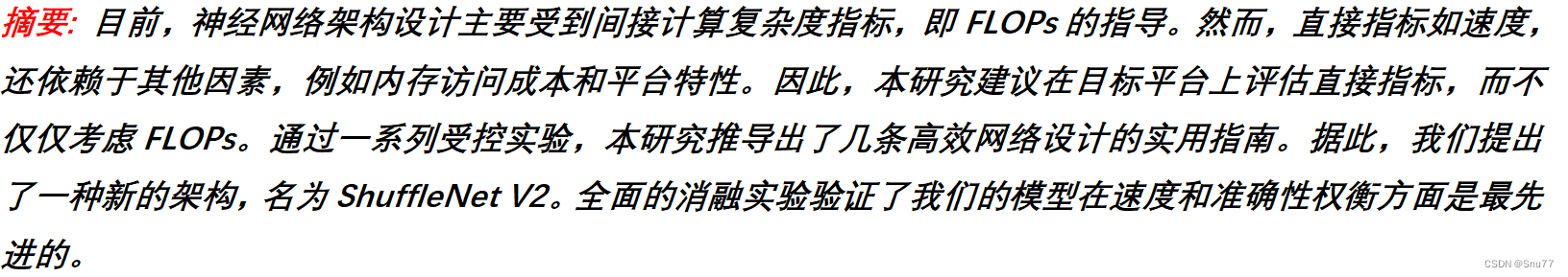 本文给大家带来的改进内容是ShuffleNetV2,这是一种为移动设备设计的高效CNN架构。其在ShuffleNetV1的基础上强调除了FLOPs之外,还应考虑速度、内存访问成本和平台特性。(我在YOLOv5n上修改该主干降低了GFLOPs,但是参数量还是有一定上涨,其非常适合轻量化的读者来使用)。本文通过介绍其主要框架原理,然后展示其效果图(基础版本和修改了本文改进机制的mAP对比图),然后手把手教你如何添加该网络结构到网络模型中。