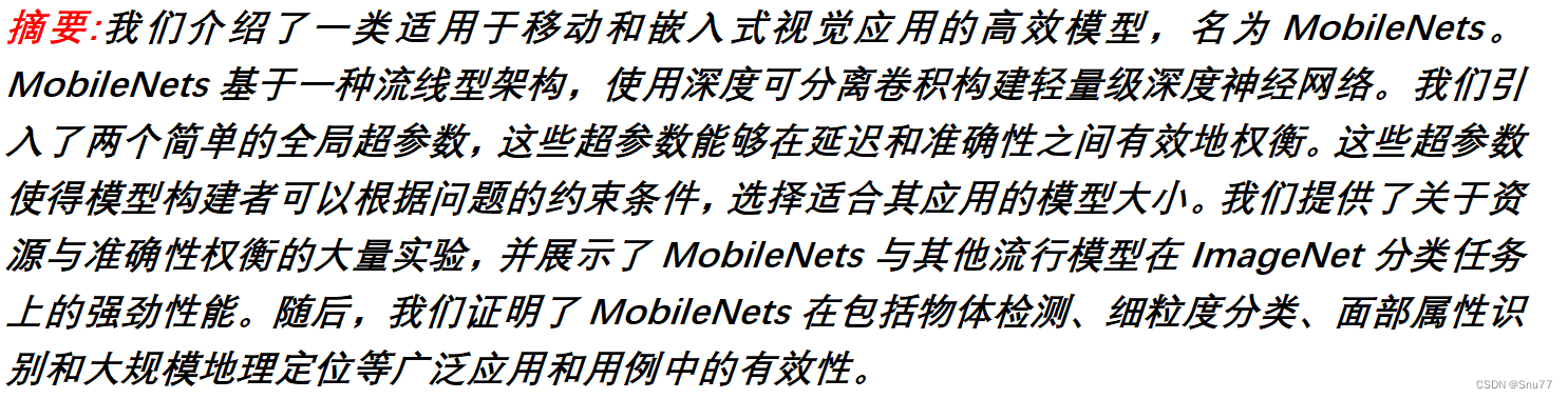 MobileNetV1的论文《MobileNets: Efficient Convolutional Neural Network
