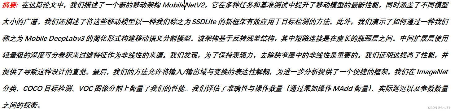 本文给大家带来的改进机制是MobileNetV2,其是专为移动和嵌入式视觉应用设计的轻量化网络结构。其在MobilNetV1的基础上采用反转残差结构和线性瓶颈层。这种结构通过轻量级的深度卷积和线性卷积过滤特征,同时去除狭窄层中的非线性,以维持表征能力。MobileNetV2在性能上和精度上都要比V1版本强很多,其在多种应用(如对象检测、细粒度分类、面部属性识别和大规模地理定位)中都展现了一定的有效性。