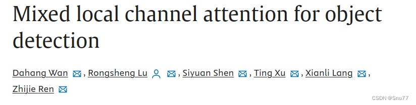 本文带来的改进机制是MLCA(Mixed local channel attention)翻译来就是混合局部通道注意力,它结合了局部和全局特征以及通道和空间特征的信息,根据文章的内容来看他是一个轻量化的注意力机制,能够在增加少量参数量的情况下从而大幅度的提高检测精度(论文中是如此描述的),根据我的实验内容来看,该注意力机制确实参数量非常少,效果也算不错,而且官方的代码中提供了二次创新的思想和视频讲解非常推荐大家观看。