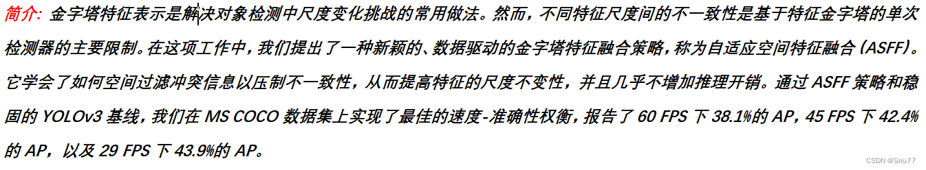 本文给大家带来的改进机制是利用ASFF改进YOLOv8的检测头形成新的检测头Detect_ASFF,其主要创新是引入了一种自适应的空间特征融合方式,有效地过滤掉冲突信息,从而增强了尺度不变性。经过我的实验验证,修改后的检测头在所有的检测目标上均有大幅度的涨点效果,此版本为三头版本,后期我会在该检测头的基础上进行二次创新形成四头版本的Detect_ASFF助力小目标检测,本文的检测头非常推荐大家使用。