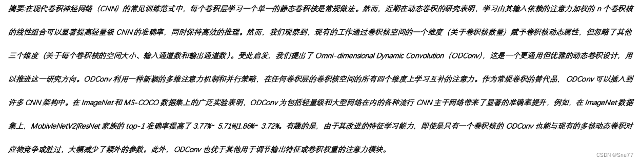 这篇文章给大家带来的是发表于2022年的ODConv(Omni-Dimensional Dynamic Convolution)中文名字全维度动态卷积,该卷积可以即插即用,可以直接替换网络结构中的任何一个卷积模块,在本文的末尾提供可以直接替换卷积模块的ODConv,添加ODConv模块的C3和Bottleneck(配合教程将代码复制粘贴到你自己的代码中即可运行)给大家,该卷积模块主要具有更小的计算量和更高的精度。下面的图片是精度的对比(因为训练成本我只是用了相同的数据集100张图片除了修改了ODConv以后其他配置都相同下面是效果对比图左面为修改版本,右面为基础版本)