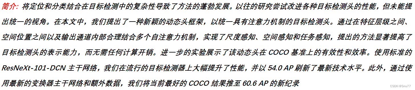 本文给大家带来的改进机制是DynamicHead(Dyhead),这个检测头由微软提出的一种名为“动态头”的新型检测头,用于统一尺度感知、空间感知和任务感知。网络上关于该检测头我查了一些有一些魔改的版本,但是我觉得其已经改变了该检测头的本质,因为往往一些细节上才能决定好的效果,我将官方的代码移植到了YOLOv8进行实验,同时该检测头有一些使用细节需要注意,成功实现了大幅度的涨点,mAP涨了百分之三十以上!!!所以检测头对于模型的精度提升是非常大的,同时该检测头有二次创新和三次创新的机会后期我也会发布在群里大家可以关注一下,同时本检测头发布的版本不同于网络上的其他魔改版本不要用其它版本的效果来对比我的检测头,欢迎大家订阅我的专栏一起学习YOLO!
