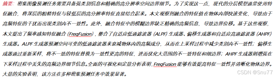 本文给大家带来的改进机制是利用2024-TPAMI最新机制FreqFusion二次创新BiFPN,《Frequency-aware Feature Fusion for Dense Image Prediction》这篇文章的主要贡献是提出了一种新的特征融合方法(FreqFusion),旨在解决密集图像预测任务中的类别内不一致性和边界位移问题。本文将其和BiFPN进行结合实现二次创新BiFPN机制,相比于原始的YOLOv11本文的内容可以达到一定的轻量化,本文的内容在作者的多类别数据集上实现了涨点。