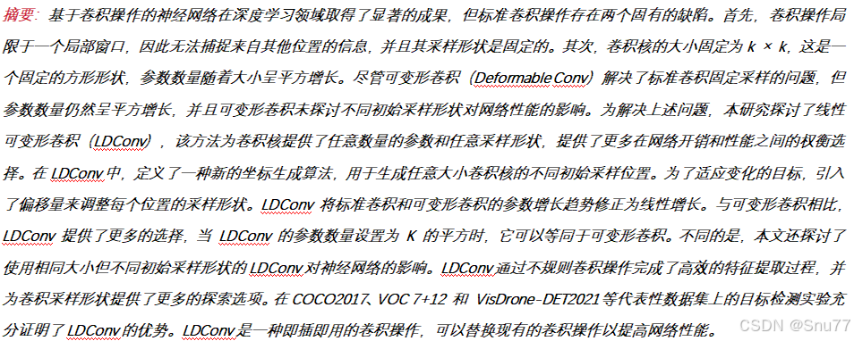 这篇文章题为《LDConv: 用于改进卷积神经网络的线性可变形卷积》