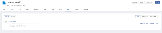 为 ruoyi-admin 开通 Arthas Agent 插件,在组件内 -> 插件 -> 未开通 -> 开通插件。