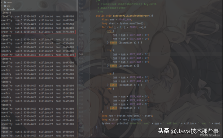 通过指令使用即时编译,尽量做到把后端优化拉满,看看 try catch 十有会影响到 jvm的编译优化。