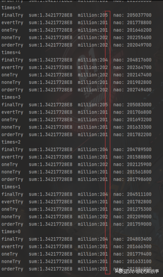 System.naoTime() 输出的是过了多少时间[微秒:10的负9次方秒],并不是完全精确的方法执行用时的合计,为了保证结果准确性,测试的运算次数将拉长到百万甚至千万次。扩展:最全的java面试题库