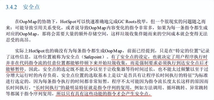 关于安全点的描述,我们可以看看《深入理解JVM虚拟机(第三版)》的 3.4.2 小节: