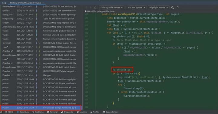 当我知道这个代码片段是属于 RocketMQ 的时候,我想到的第一个点就是从代码提交记录中寻找答案。