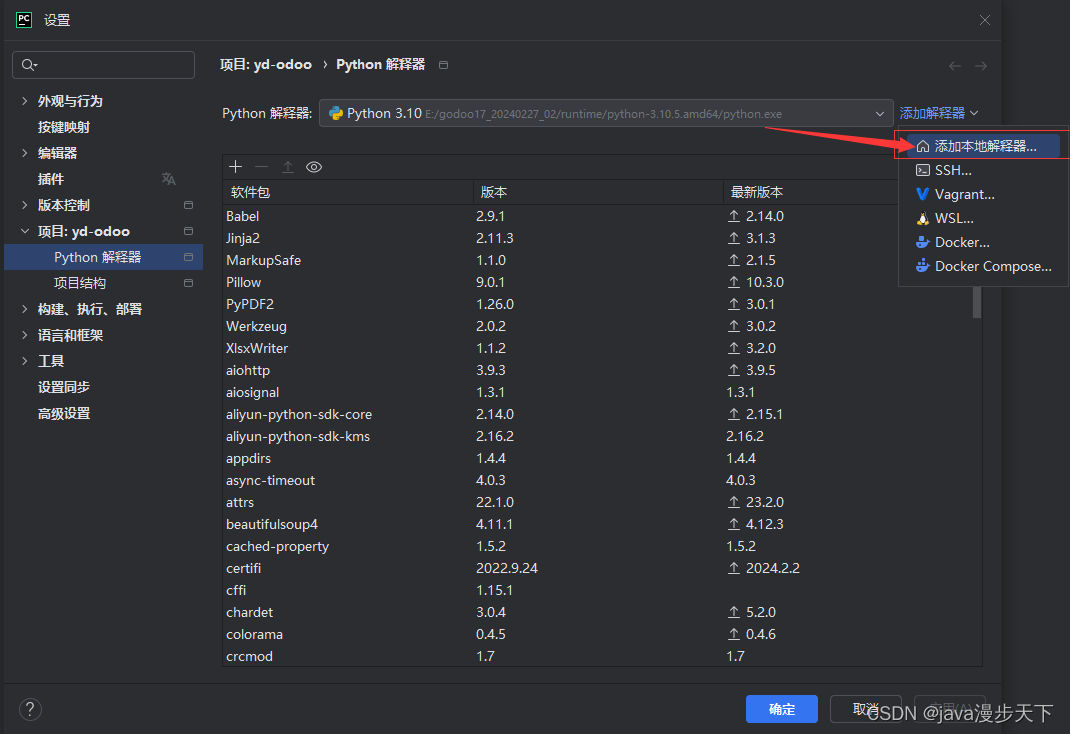 3.2点击到项目,先设置Python的解释器,点击添加本地解释器。
