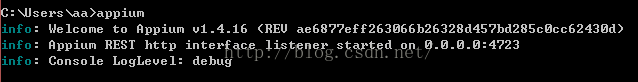 验证是否安装成功,命令行输入appium如果出现下面信息就是成功了