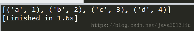 [('a', 1), ('b', 2), ('c', 3), ('d', 4)]