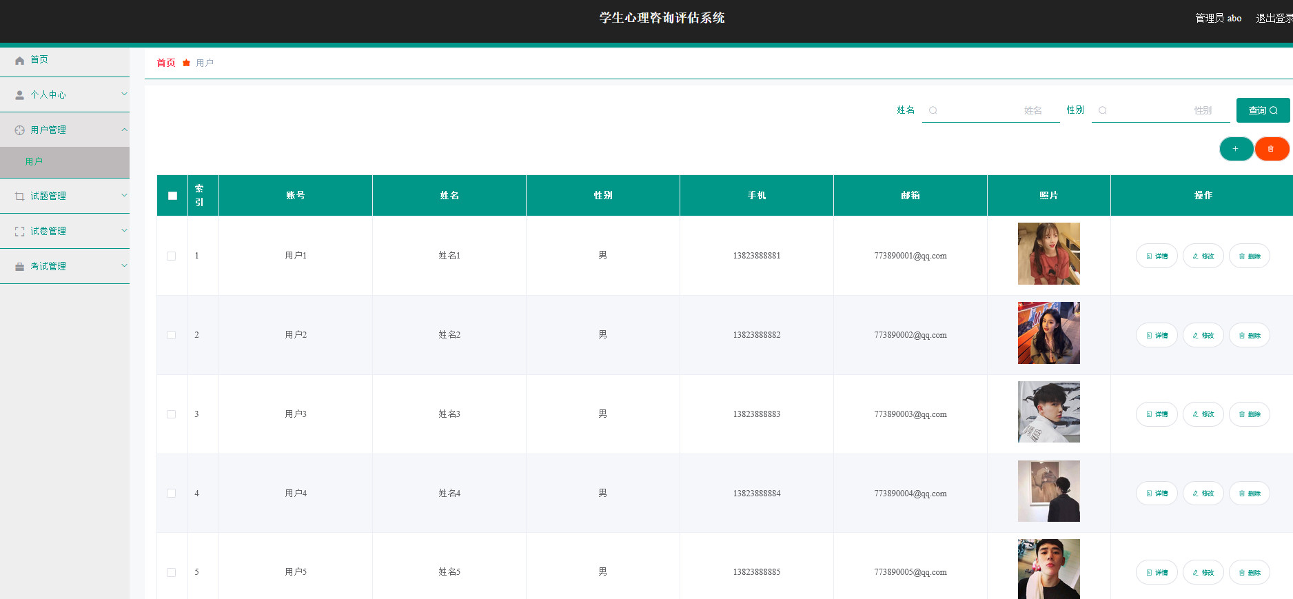 4、学生心理咨询评估信息都是通过网站进行显示,其实质是这些信息都保存在网站对应的数据库里面。只要操作员不去恶意删除信息,那么这些信息将会永久保存。