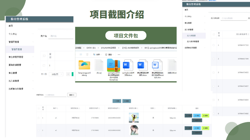 第5章:实现粮仓管理系统管理系统的功能并进行功能界面展示。