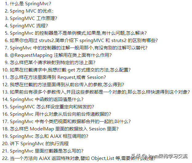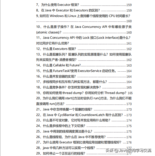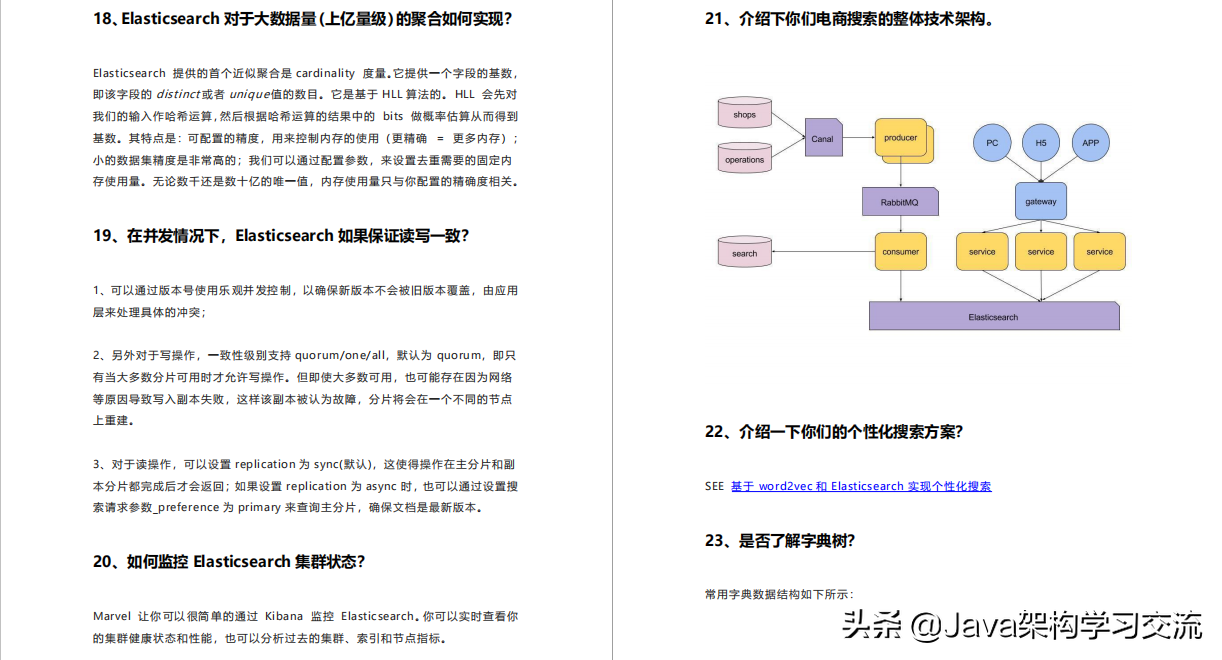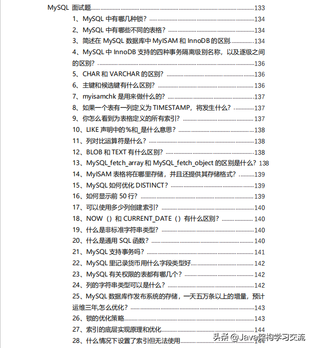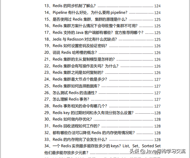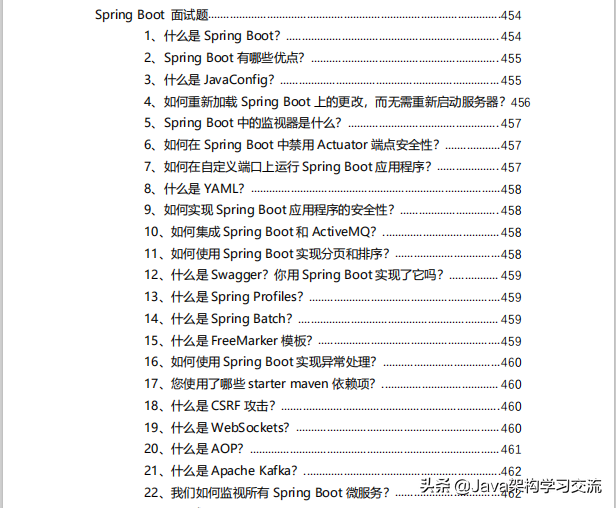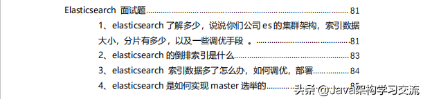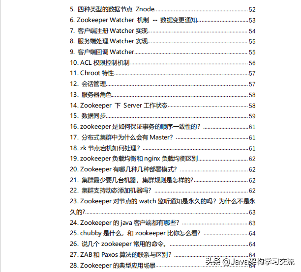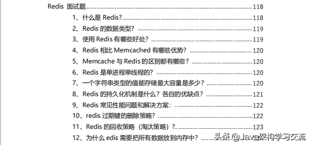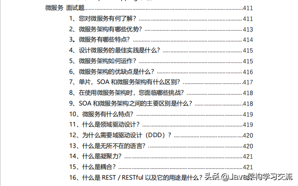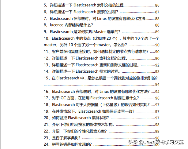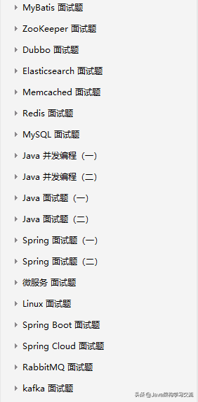 这份PDF面试文档包含了Kafka、RabbitMQ、Linux、Spring、SpringBoot、SpringCloud、SpringMVC、微服务、并发编程、MySQL、Redis、Memcached、Elasticsearch、Dubbo、Zookeeper、Mybatis、算法与数据结构等,由于篇幅有限,这里以图片的形式给大家展示一部分。完整面试文档,有需要的朋友,关注公众号:JavaAC,获取